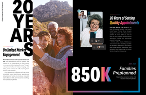 20 years of unlimited imagination & endless innovation. This campaign was built to showcase the extraordinary accomplishments Precoa has achieved over the years while also focusing on the new heights we can achieve in the future. The 20 Year campaign features a wide variety of mediums. One of the biggest projects involved in this campaign was our magazine which hit the doors of hundreds of funeral homes across the country. Additionally, I've created a multi-email campaign, paid social media, infographics, and a unique animated pillar design featuring 9 TV screens spanning 3 pillars for our convention booth.